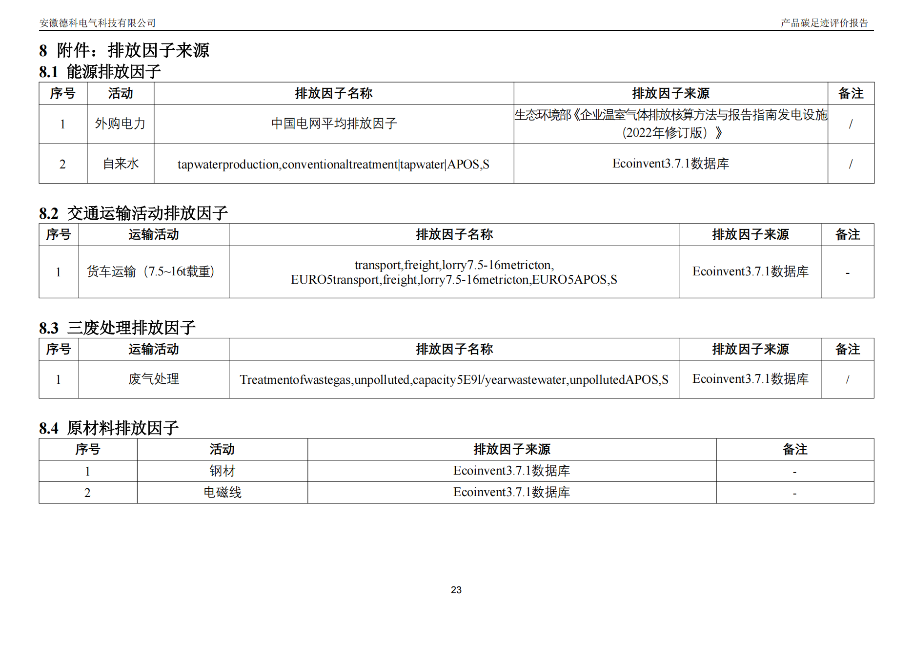 2024年德科電氣產品碳足跡評價報告